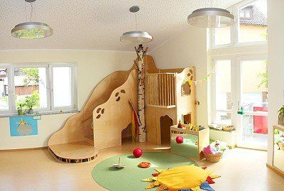 Die vier Gruppen teilen sich auf zwei Etagen auf. Auf der oberen Etage befinden sich zwei verlängerte Vormittagsgruppen (geöffnet bis 15:00) und auf der unteren Etage zwei Ganztagsgruppen. Unser kleines Nest wurde bis in jedes Detail für die Entwicklungsphasen, Lebenssituationen und Bedürfnisse der Kinder von null bis drei Jahren konzipiert. Die Räume mit ihren verschiedensten Funktionen bieten sowohl Lern-, Bewegungs- als auch Rückzugsmöglichkeiten.